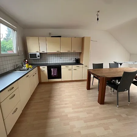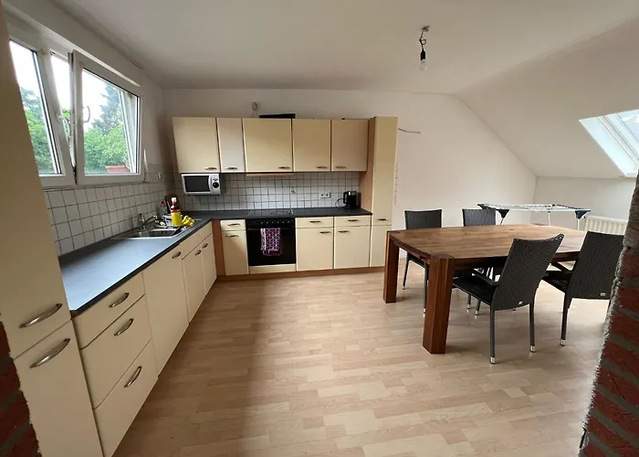 The apartment includes a fully furnished kitchen with an oven, basic cooking facilities, and a dishwasher provided. Dusseldorf airport is located 40 km away.